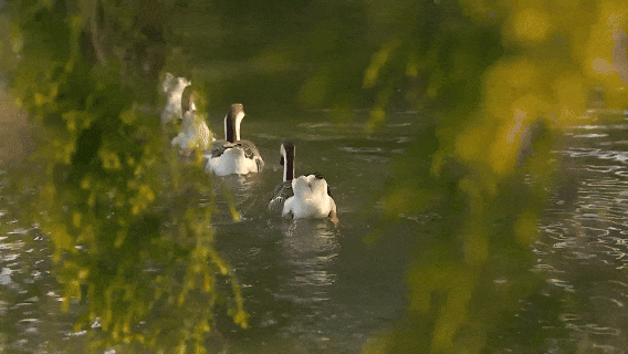 日落前后,暑气褪去,晚风带着湖水的清凉。鸿雁结伴归巢,在湿地里安心成长。